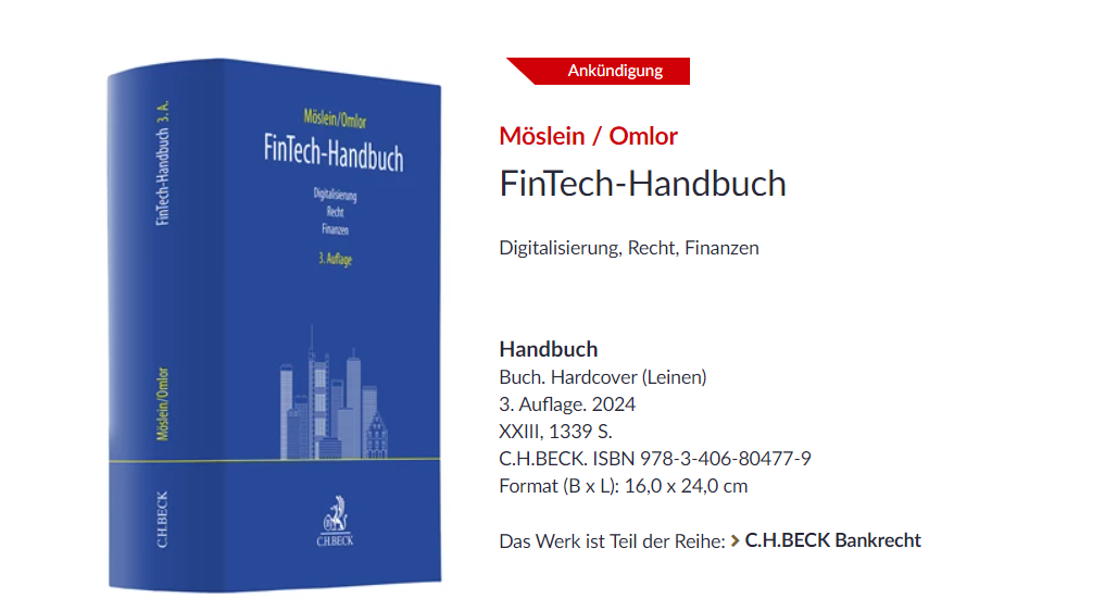 Beck, the publisher, informed us, that the 3rd edition of a huge volume on “Fintech” is in print now. It can be ordered here. I am a proud coauthor; thank you, again, to Dr. Žiga Škorjanc, who did most of the work here.