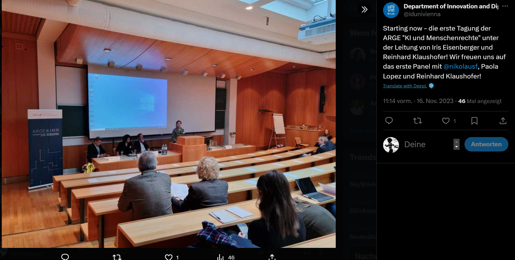 Prof. Dr. Peter Roth from VetmedUni Vienna is organising a lecture series. I will speak om Thursday, Nov. 23, at 4.30 pm on “Rechtliche Aspekte generativer KI in Lehre und Forschung” - AI is everywhere, even in animals :-).