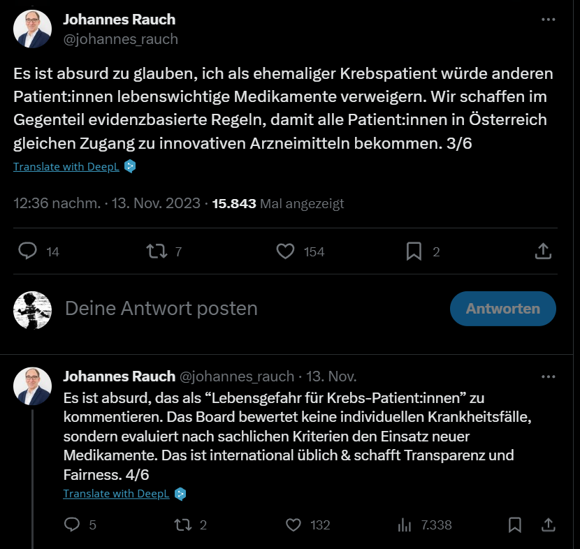 I came into possession of a proposal for this law (of unknown origin so far), introducing a steering committee making “recommendations” on expensive cancer treatments. This raises very important legal and ethical questions - how can one calculate survival time in relation to costs? - including that the committee recommending these treatment plans and medications is supposed by law to get access to pseudonymized data from the cancer registry.
