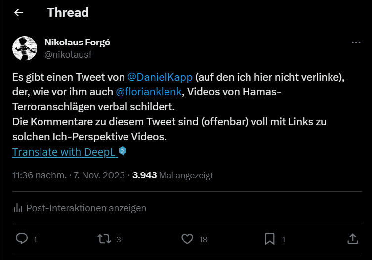 At the same time, I am very concerned about the many unsolved and fundamenal regulatory issues in the #DSA, coming, for example, with “official” leaks (organised or at least supported by governments and military) of barbaric terror videos freely available on all major platforms. I wrote a very first Tweet on this to start the discussion, but I have even less answers than normal here.