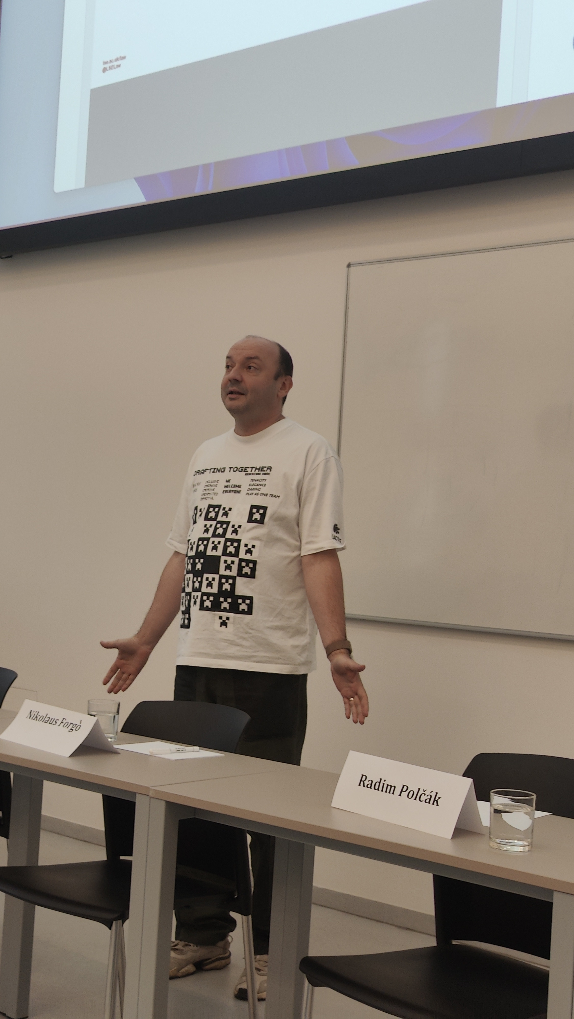 We were a group of eight joining Cyberspace 2023 at Masaryk University in Brno and it was marvelous. About 150 people of all ages and all backgrounds on law and IT in a very dense programme of high quality. With two keynotes, held by Martin Husovec and Ine Beyens on the Digital Services Act and correlations between social media usage and mental health among adolescents. I invited both for an #arsboni session and Martin is going to come on January 18 at 5 pm - you might wish to put this into your calendar. Old time friend, colleague, role model and vice rector Prof. JUDr. Radim Polčák, Ph.D. was the master of ceremony behind all this, trying to enforce a casual dresscode by his own example. This is, I need to insist, him, not me, despite of the misleading name tag in front of him, opening the plenary.