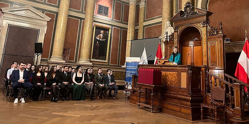 Our vice rector for students, Prof. Dr. Christa Schnabl, and our dean for students, Prof. Dr. Franz-Stefan Meissel, were so kind to honor the students from 3 LLM-programmes, including the one on information and media law in the big festival hall of UNIVIE.