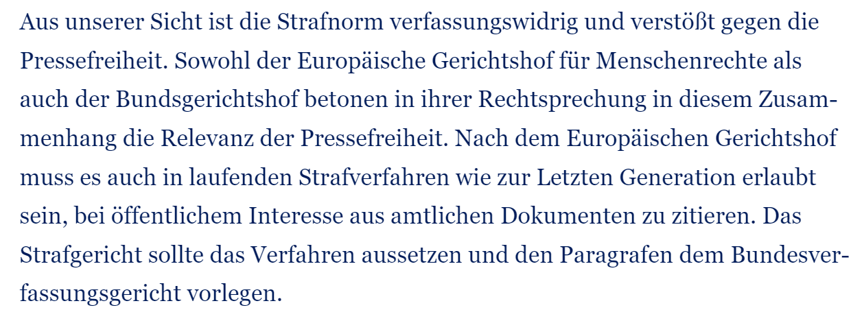 There are some news on the question whether the German provision forbidding the publication of official documents in criminal procedings. (§ 353d StGB) is compatible with human rights legislation, case law and the German Constitution.