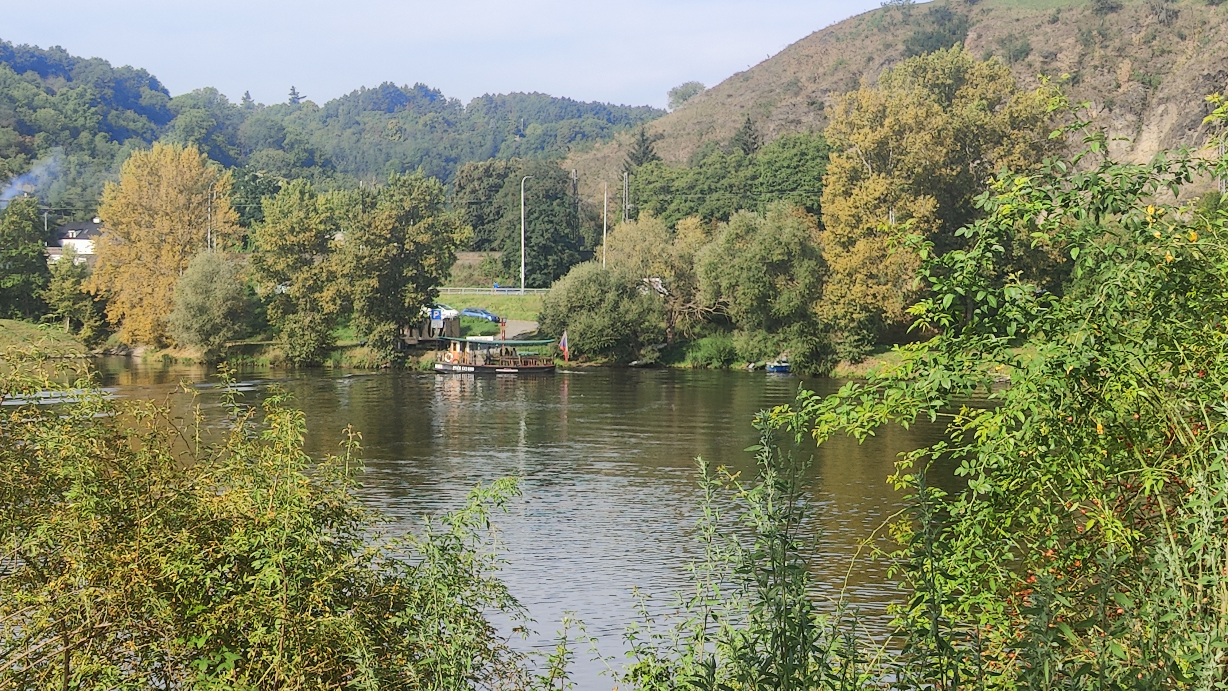 I will remember today as the day of the ferries. After having left Prague (we saw some very nice quarters with houses that could easily stand in Josefstadt and villas that would fit to Döbling, but ended up in rather stressful drinving conditions in the outskirts with three lane roads without bike lane and lots of traffic) and some kilometers along the beautiful river Moldava (with many taverns just like at Danube when you go to Klosterneuburg, unfortunately all closed), Komoot finally suggested, then insisted that we would need to cross the river.