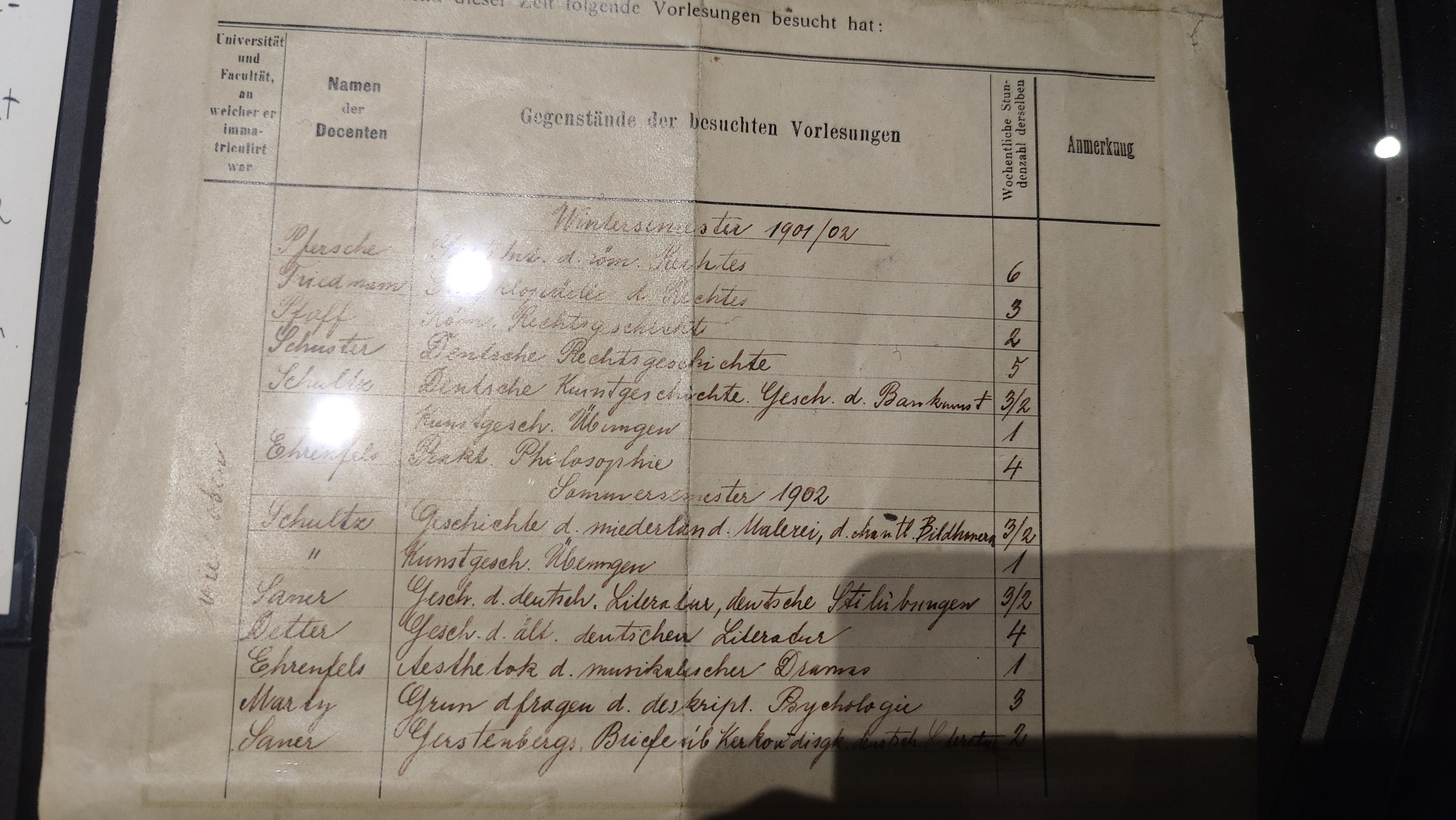 We went into the Franz-Kafka Museum. The most interesting news for me there was Kafka’s course certificate for his first year of law studies with some roman law and legal history classes, but many more that were not at all ‘useful’ or even necessary for a lawyer: history of arts, philosophy of arts, history of litterature, aesthetics of music etc.