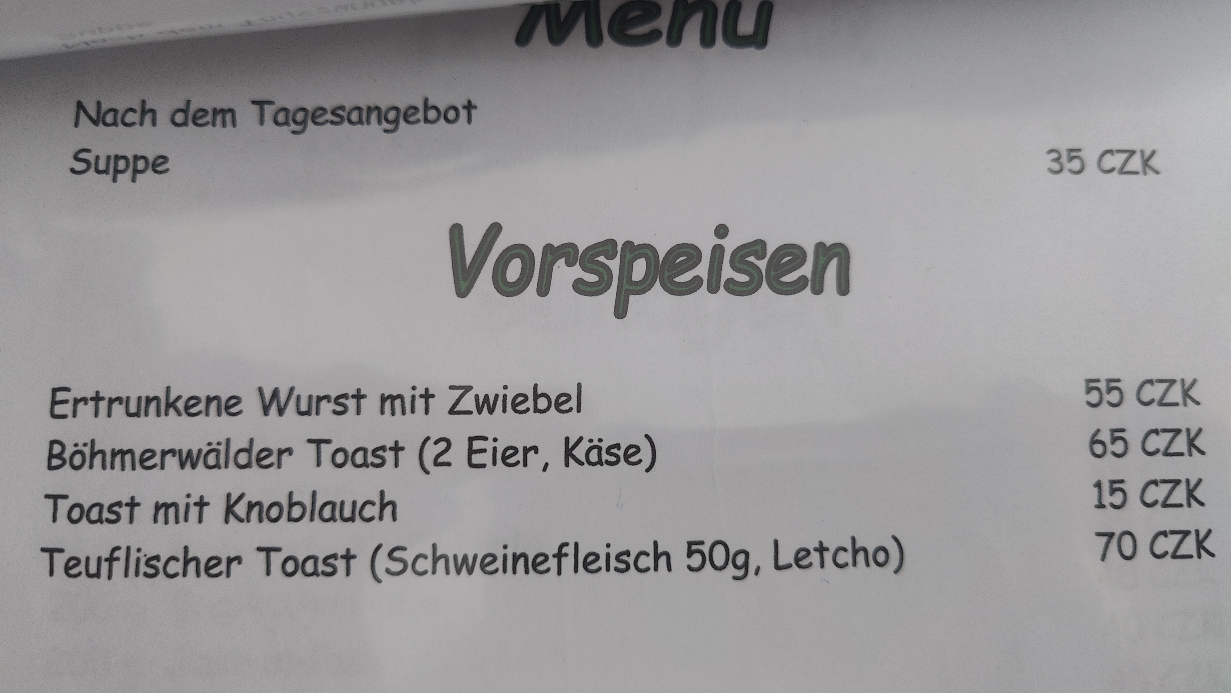 If you try to pay in the Cech Republic with Euro (which I needed to do because I didn’t find an ATM during the whole trip), you are however still ripped off as if it was 1988. The Currency Rate used in the restaurant in which we had dinner was 50 % above the “official” Google-figures. Czech cuisine, by the way, is also still rather rustic, with things such as drowned sausage (don’t ask me what it is) and meat, meat or meat.