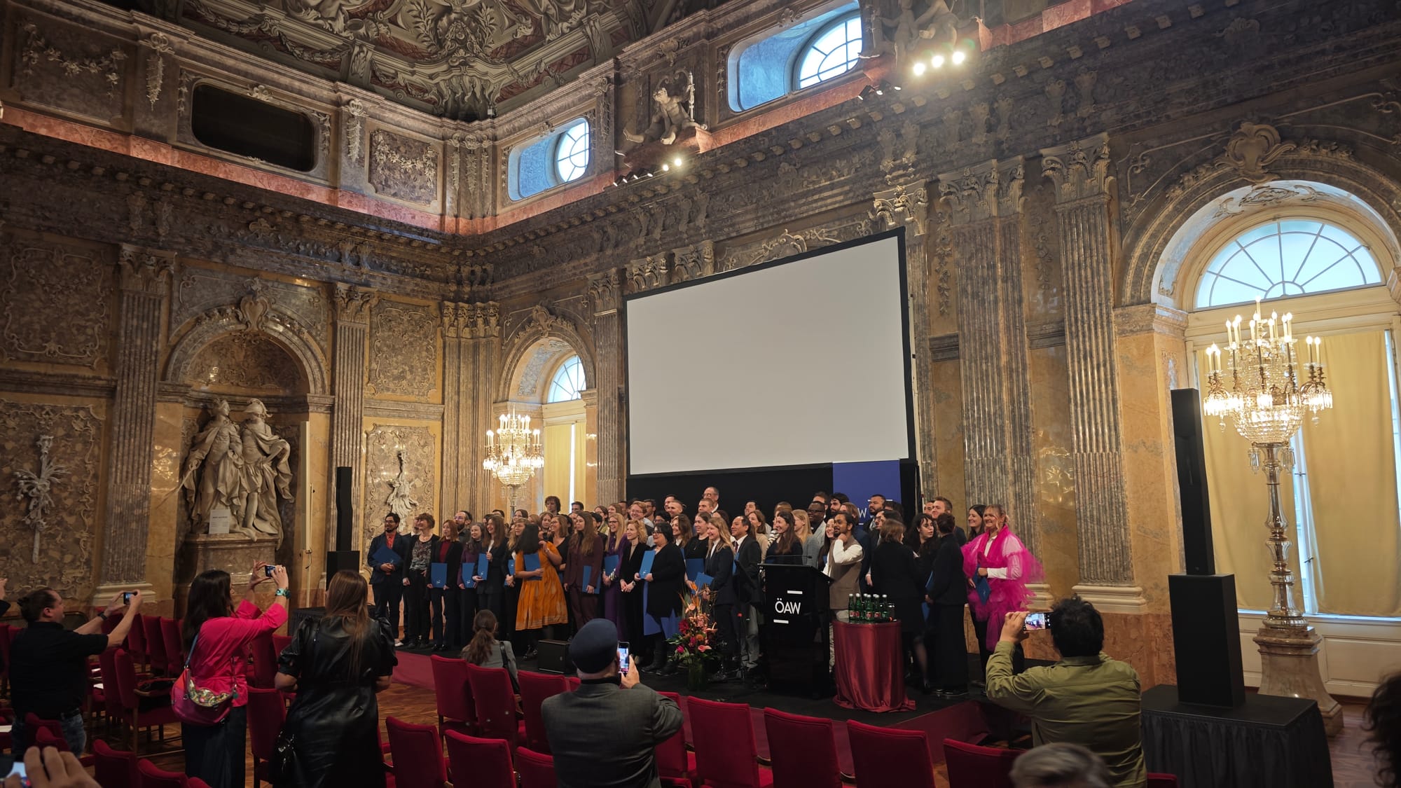 I attended the scholarship ceremony with Klaudia receiving her scholarship. President Faßmann and Minister Holzleitner were present.