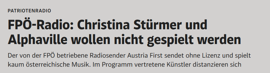 We will speak about the new webradio "Austria first", hosted and paid by the political party FPÖ, and, in particular, about Austrian musicians not wishing to be played there.