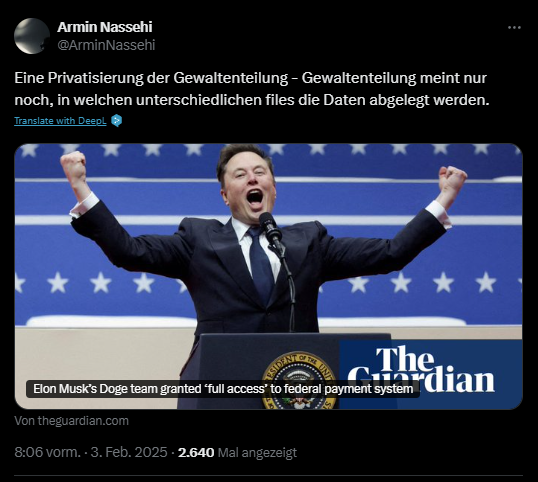 There is plenty of reason of concern. What could go wrong with Elon Musk and a group of unknown engineers in their 20ies outside administration getting read and write access to every (non classified) data that is processed by public authortities, including tax and payment data? The Executive order states: “Agency Heads shall take all necessary steps […] to the maximum extent consistent with law, to ensure USDS has full and prompt access to all unclassified agency records, software systems, and IT systems.”