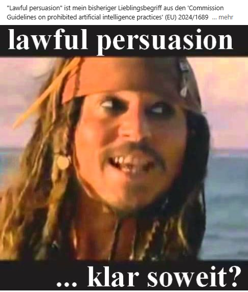 There is more bad legal text to lament about: I needed to read the most recent “offical” EU publication on AI. This is 135 (!) pages of a legally non binding text on a single article (5).