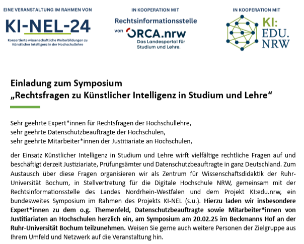 On February 20 I will speak at Ruhr Universität Bochum about legal issues of AI in University Education.