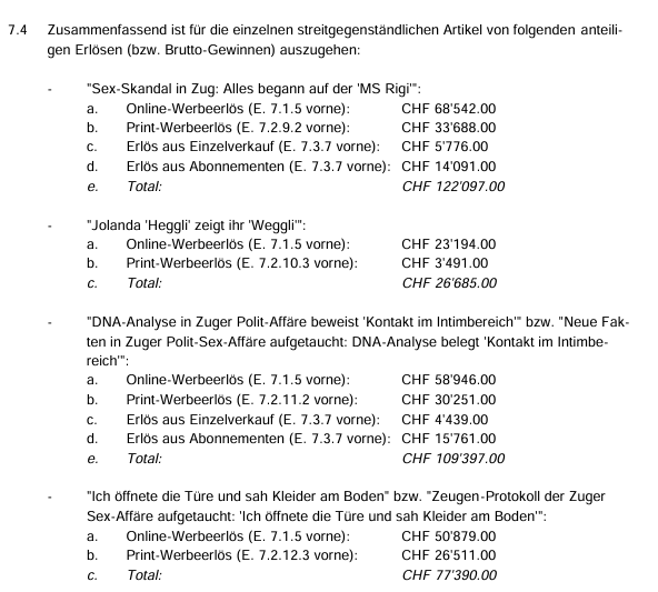The 57 pages long decision that is fully available on Spiess-Heglin’s website is in particular interesting because of the calculations made to quantify the profit stemming from the four online articles.