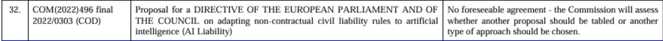 While lots of text is produced here, other text disappears again: The Commission withdrew the proposal for an AI Liability Directive (with very short and very general reasoning).