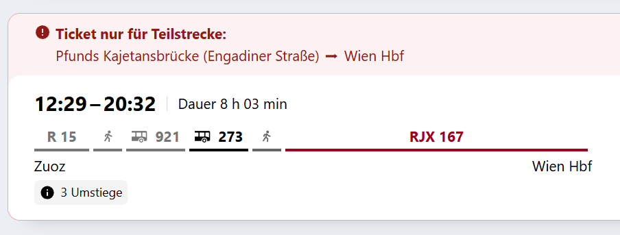 So, I decided to return to Austria via public transport as quickly as possible. But - unfortunately - you can't buy the ticket online in one step - you need one ticket for the Swiss and one for the Austrian part.