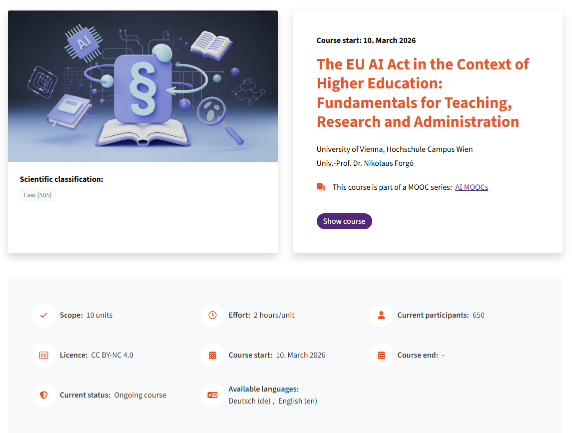 This is freely available (hopefully) high quality content on AI legislation that friends from Hochschule Campus Wien and I have invested quite some effort into. People even start sharing on LinkedIn that they succeeded in completing the course. :-)