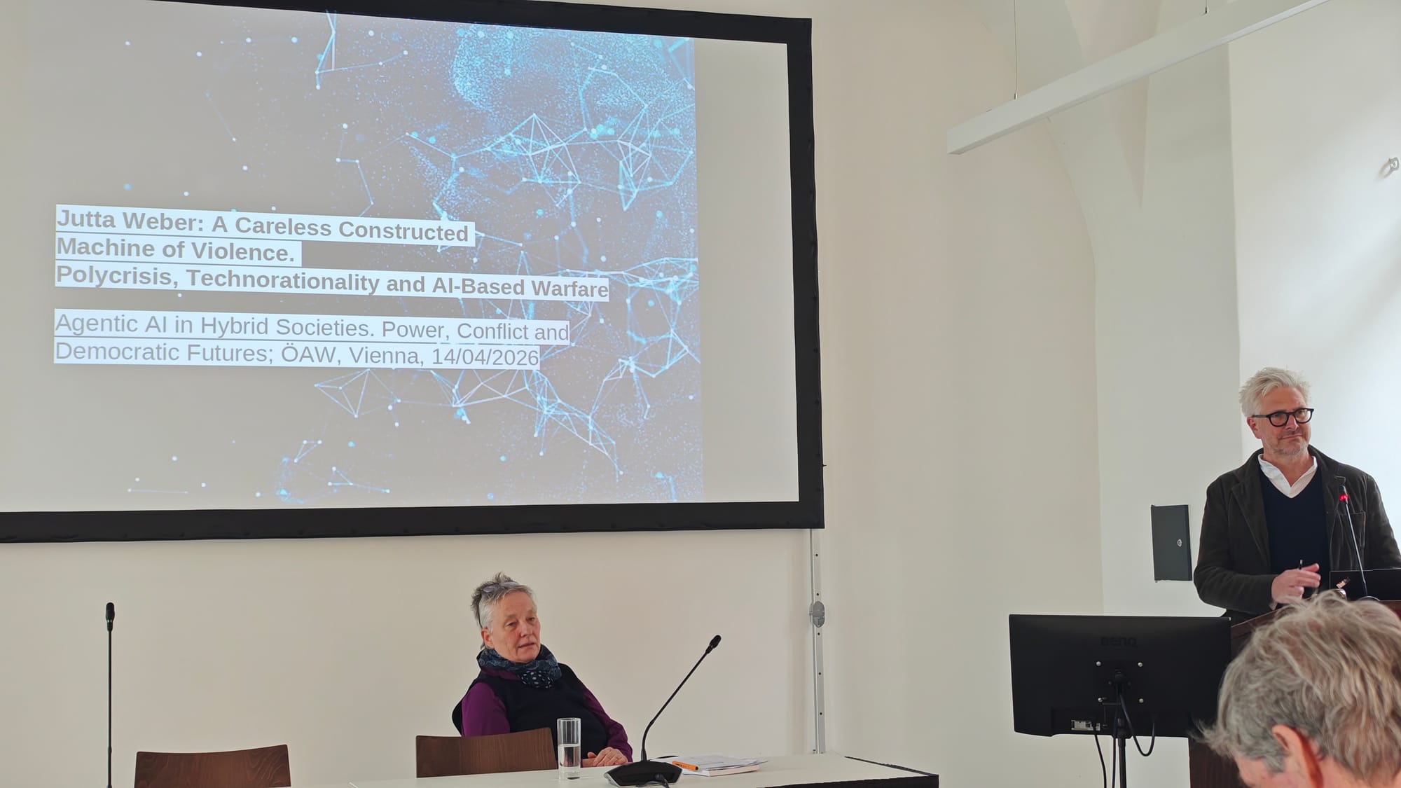 Prof. Dr. Jutta Weber then gave a presentation on AI and warfare, in a session chaired by Prof. Dr. Martin Kornberger.