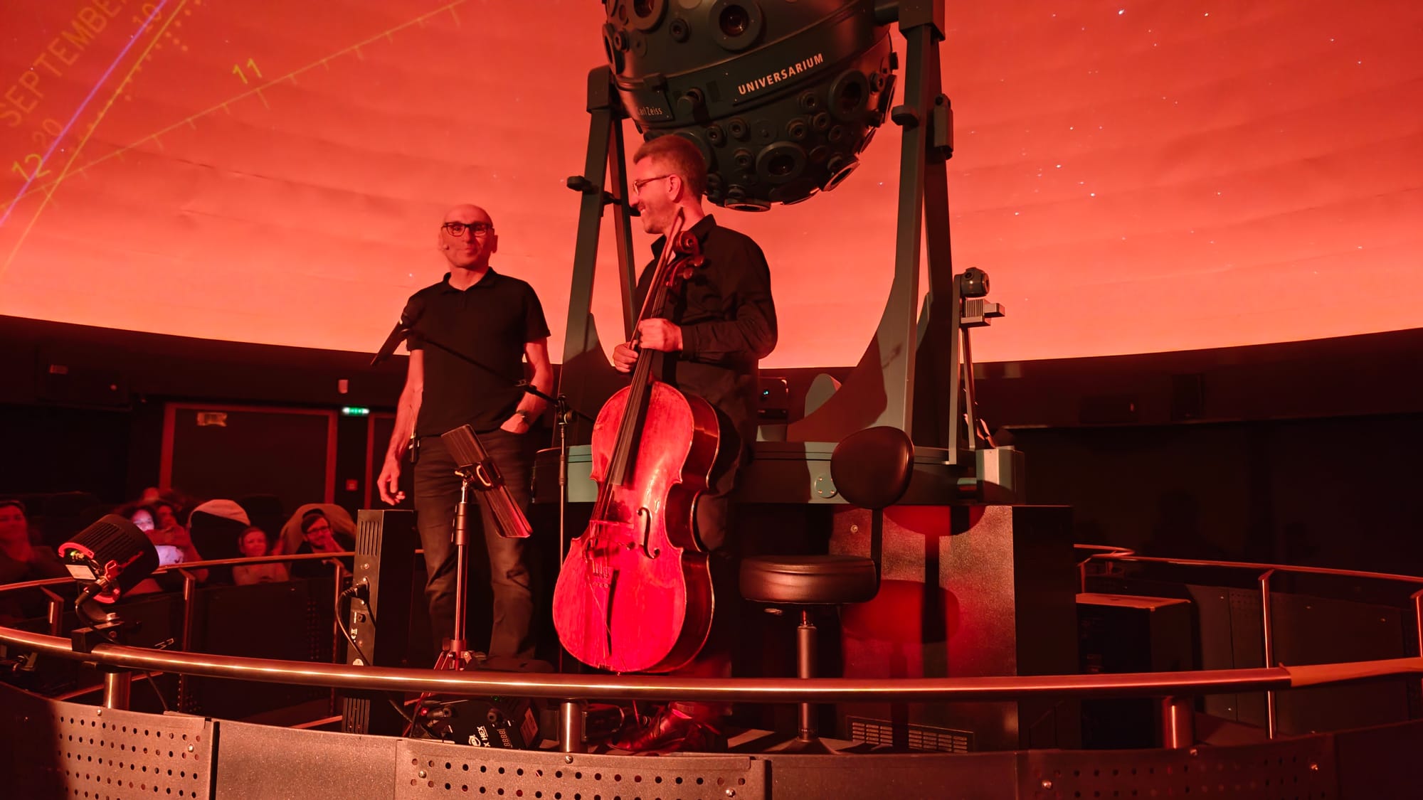 On Wednesday, I attended a cello-concert, given by Peter Hudler, combined with a lecture on the sky and its stars in spring, delivered by Dr. Michael Feuchtinger, in Vienna's planetarium. The music line up was a little special going beyond classical boundaries, from Bach to Jimmy Hendrix and with some Viennese singing, but I liked it, as well es the profound information of what one could see in the sky if one looked up into the sky and took note.