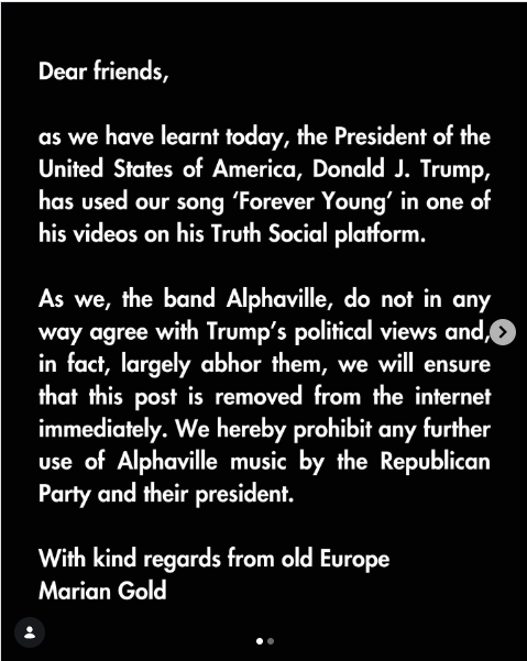 BTW: There's a (not so) funny update about Alphaville - the 80ies-band I wrote about last week. In a recent Instagram post they state that Trump has used their hit "Forever young" for political purposes without their permission.