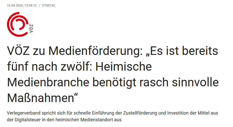 First reports and reactions come in while I am finishing this newsletter, including Der Standard, Horizont (Paywall), ORF, Salzburger Nachrichten (Paywall). The funniest statement so far comes from Austrian publishers' lobby group VÖZ that I translate to "Leave everything as it is, but give us (more) money so that we can leave everything as it is."