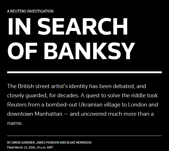 Reuters has a very long and profound article on Banksy's "real" identity - that I found ironically in a Reddit thread on Barbour jackets.