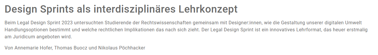 On Saturday, May 17th, I will be part of the teaching team and the jury in the legal design sprint in Vienna. That’s a very interesting teaching format.