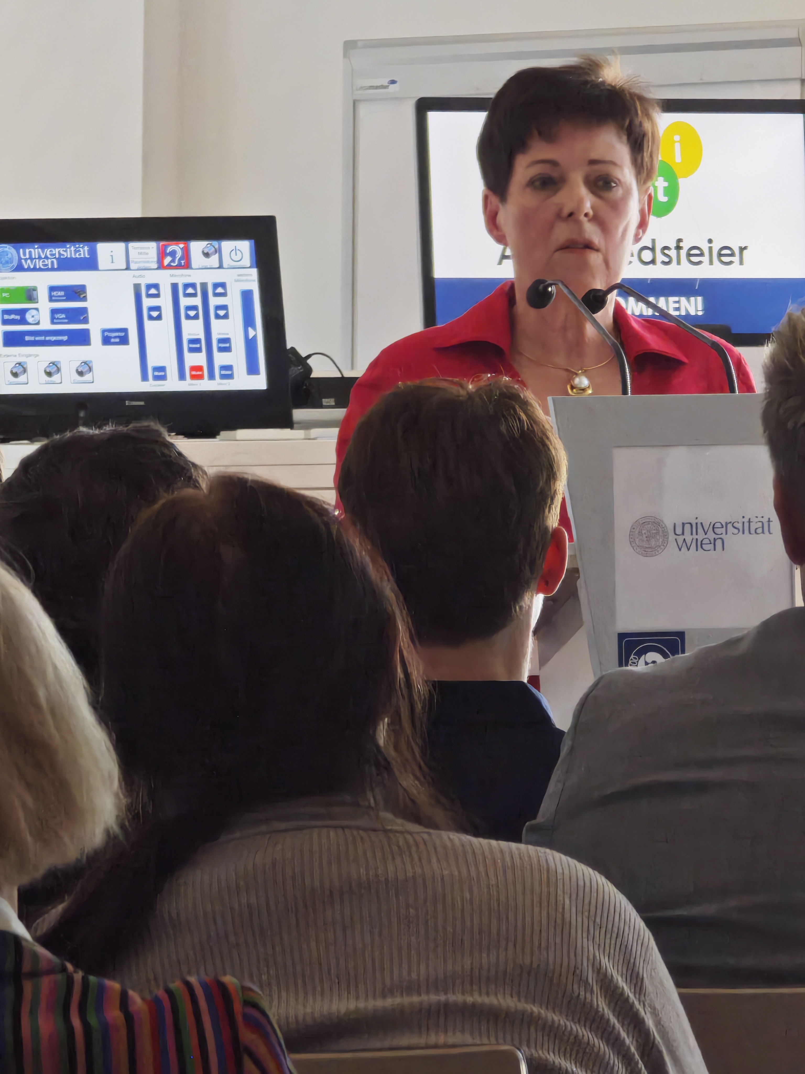 Brigitte Kromp, one of the pioneers in the Austrian Open Access movement, was celebrated with a big party in UNIVIE’s Sky-Lounge.