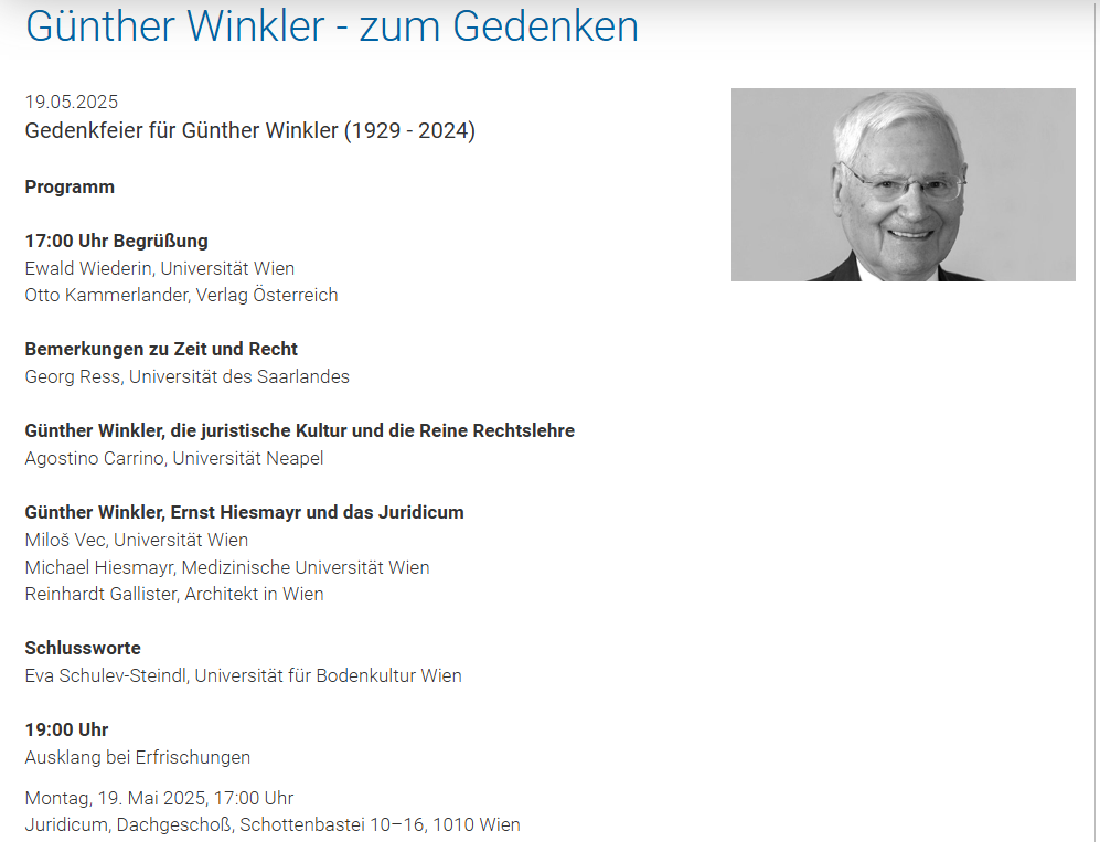 One of Austria’s leading figures in public law, Günher Winkler, passed away in 2024. Winkler was not only outstandingly influential, not to the least because of assistants such as Christoph Grabenwarter, Peter Kostelka, Jörg Haider, etc., in Austrian constitutional law, but is also known as the mastermind behind the building Juridicum.