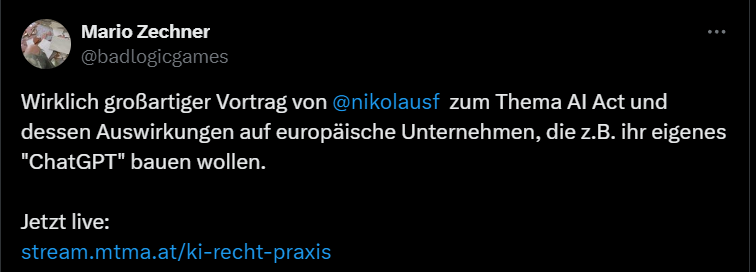 I spoke on a Sepp Hochreiter statement on the AI-act and the negative impact it has for his work (online here, starting at 34:00 minutes. I “deconstructed” his intervention in 45 minutes with my legal perspective.