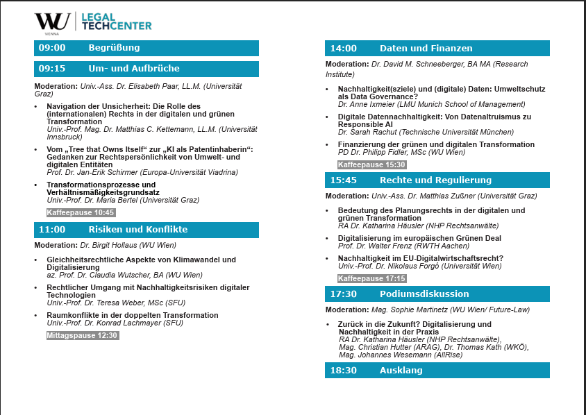 Vienna University of Economics’ Legal Tech Center organises a conference on Digital Sustainability (Digitale Nachhaltigkeit – Nachhaltige Digitalisierung) on Wednesday. I’m one of the speakers in the afternoon, talking about “Nachhaltigkeit im EU-Digitalwirtschaftsrecht?” (Spoiler: No).