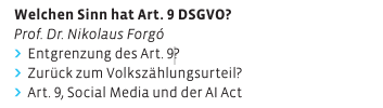 This is an all stars meeting in Köln on June 25 and June 26. Being the very first speaker there, I will ask a fundamental question: What is the purpose of Article 9 GDPR? Spoiler: My answer will be: 42. But I will need some time to explain this.