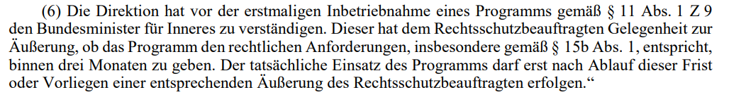 One of the (small) changes one can see quickly is that the internal watchdog (“Rechtsschutzbeauftragter”) will have 3 months now - not, as originally suggested, 2 weeks - to assess the infiltration programme.
