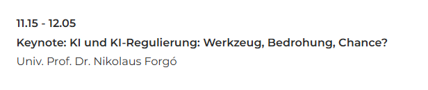 Wednesday June 24 will bring a keynote at the “KI-Tag” auf Austria’s lawyers association.