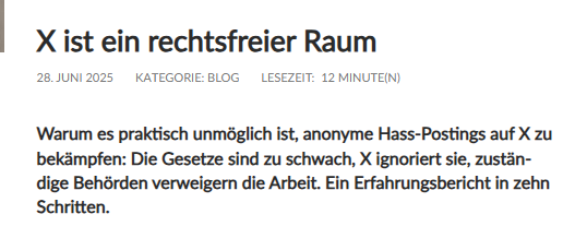 Dr. Armin Wolf has an interesting blog-entry about his attempts to get hate speech away from X, quoting, inter alia, me on Dorf.TV.