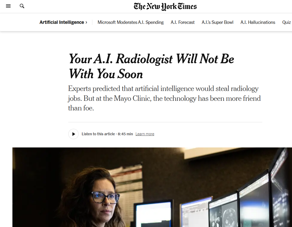 The presentation gave me reasons to do some research about a very sad case of a teenager-suidice potentially triggered by an AI-chatbot (see below for more on this) and about job perspectives for radiologists.