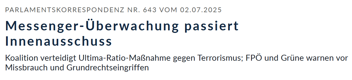 The talk is a very strong indicator that the software to be bought will not comply with the necessary legal requirements. The draft passed, however, the Parliamentary Committee of the Interior on July 2nd.