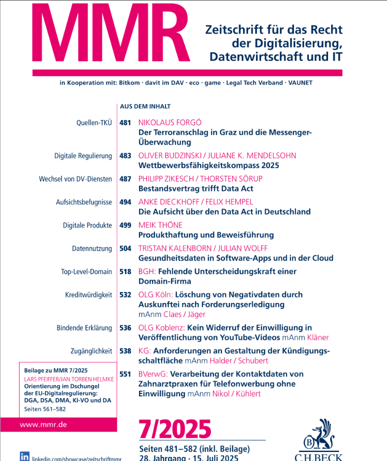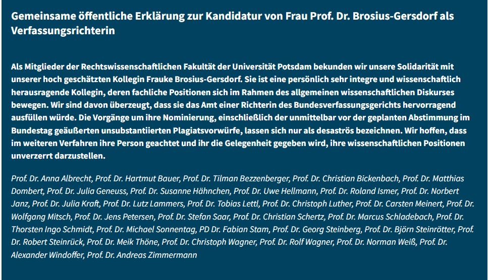 The issue of the postponed election of my former Hannover-Colleague Prof. Dr. Frauke Brosius-Gersdorf to the German Consitutional Court (see also Weekly 28/2025) kept me busy this week. Here’s a chronology, LTO has a report on an Open Letter that I signed - together with 300 other law professors.