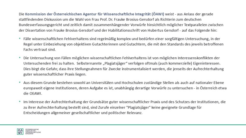 Dr. Sabine Chai published a statement in the name of OEAWI - the Austrian research integrity organisation I am part of.