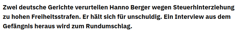 Although it’s long (14 hours, I have heard 10 so far), I would recommend it, as one learns some news about attorneys, tax advisors, investment banks and their respective roles in this affair causing billions of damage. Hanno Berger, for example, is an interesting and still very active character - just like is former partner Kai-Uwe Steck and, in particular, state prosecutor Anne Brorhilker.