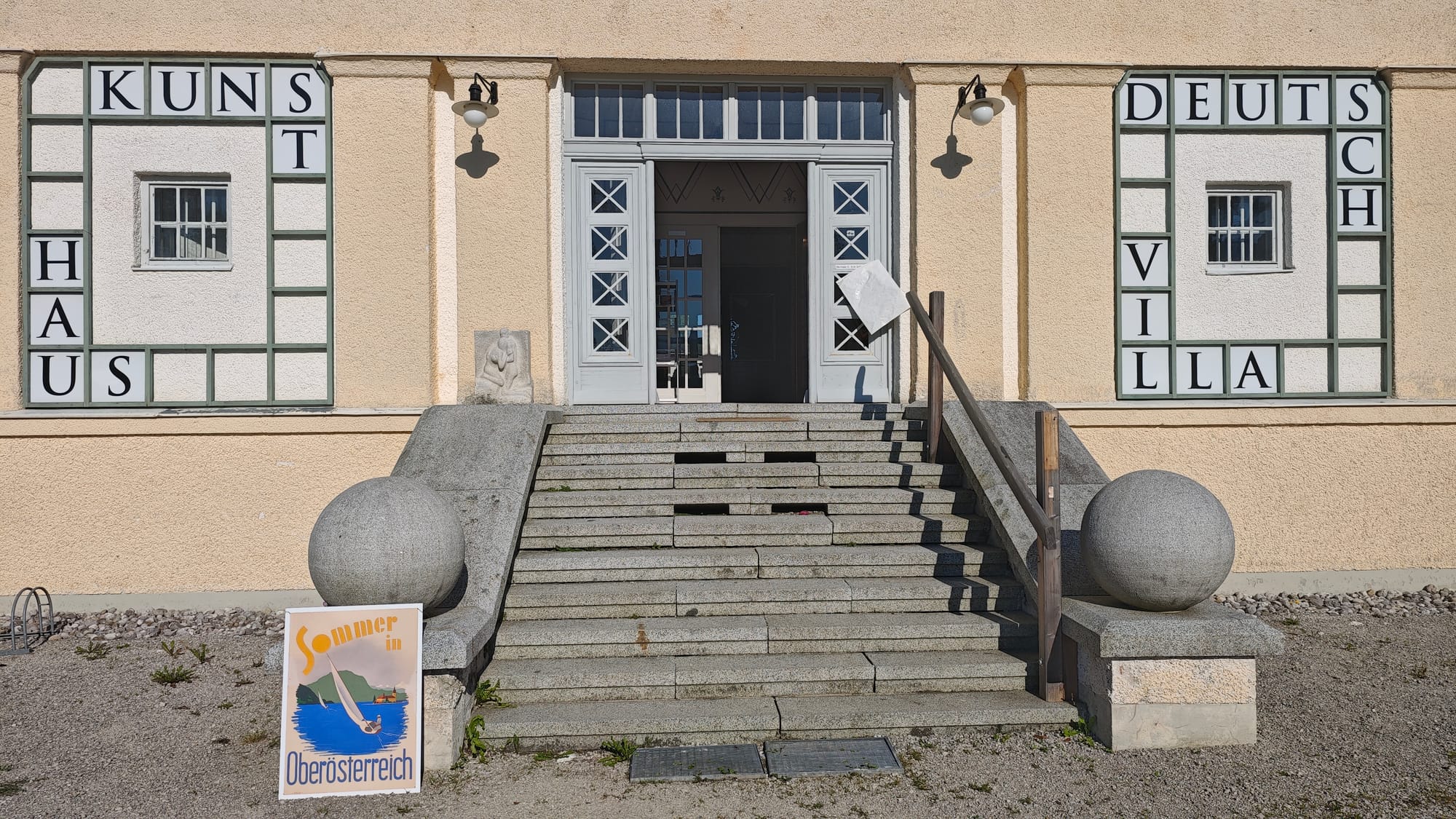 Deutschvilla - which was formerly owned by Sommerhochschule and used as professors' residence until the 80ies when, unfortunately, it needed to be sold - and serves now, inter alia, as a showroom - has a nice exhibition on touristic advertisement posters ("Sehnsuchtsorte") until september 25.