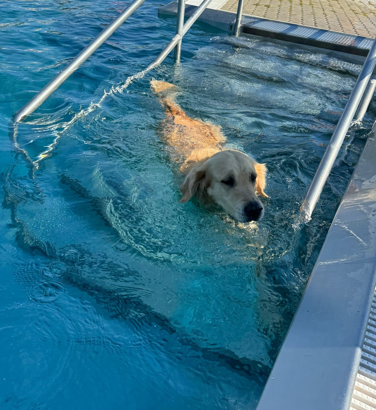 went swimming at a dog swimming event closing this year’s summer season in a public outdoor pool.