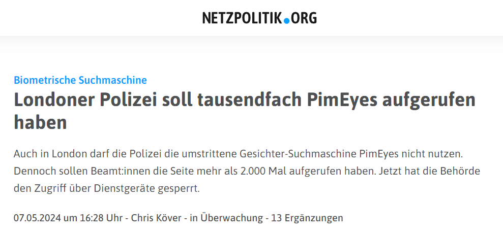 I was, in particular, impressed by Sophie Matjaz (what a brilliant young lawyer!) speaking, inter alia, about PimEyes (“we are committed to protecting privacy of our users”) and similar obscure services (place of business: Belize) being used or not used by Swiss (?) police (“Bei der Polizei arbeiten Menschen, die sich Gesichter gut merken können.”). Rumors are there that it wouldn’t be Swiss police only not using the service.