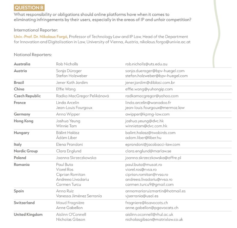 Together with Anna Tauber I have the honour to be the international reporter for for Question B