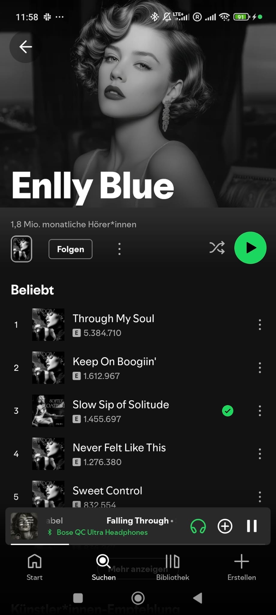 I liked that one too, a little, but due to my learnings from Let Babylon Burn (see Weekly 36/2025) and AI-generated music on Spotify in general I googled the artist "Enlly Blue" to learn more about her before dealing with her music in more detail. Google, though, interpreted this as a typo and brought me plenty of hits for Emily Blue - who is, indeed, a real person. It took me some time to identify the confusion and to learn - again - that Enlly Blue - different from Emily Blue - is totally AI generated.