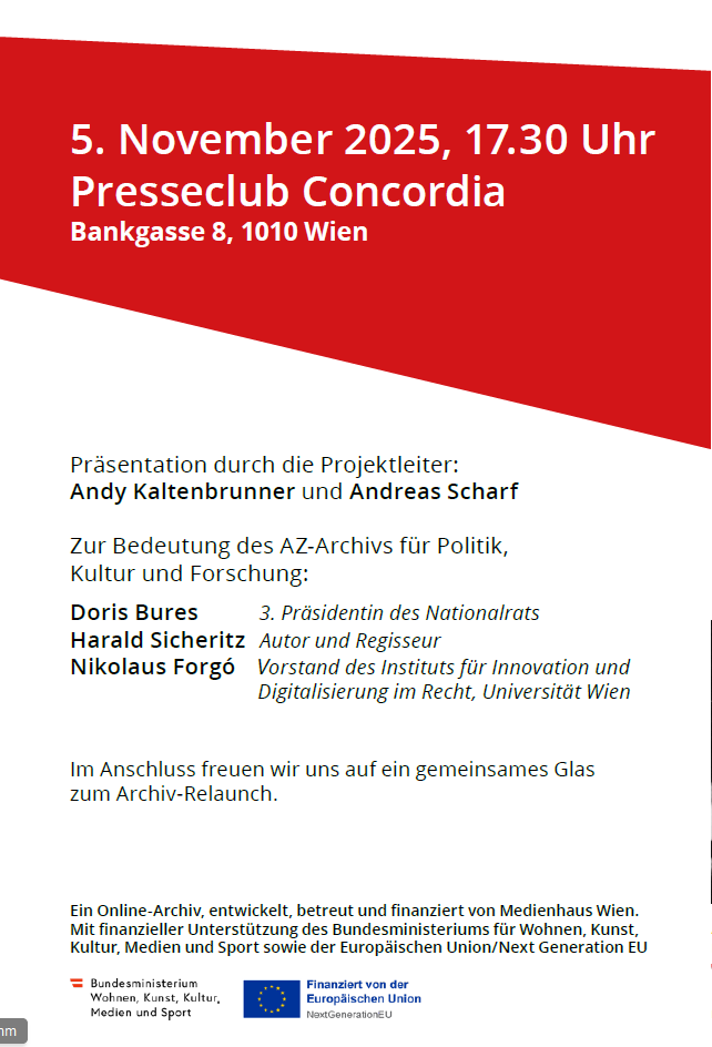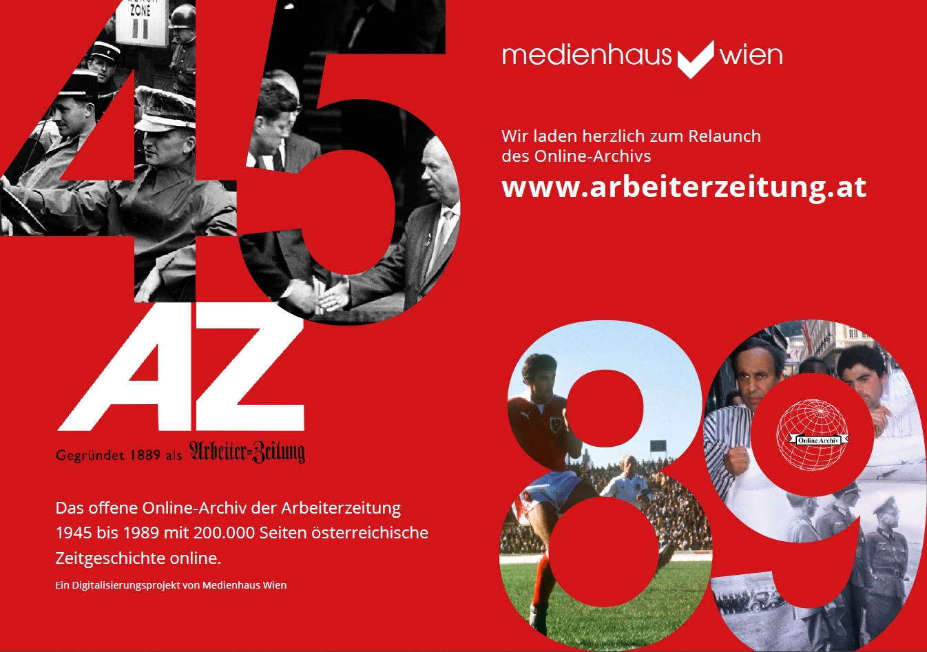 Medienhaus Wien relaunched the digitalisation of Arbeiterzeitung - the social democrat party's daily newspaper. Content from (almost?) all daily editions published between 1945 and 1989 will be available to everyone again via www.arbeiterzeitung.at .