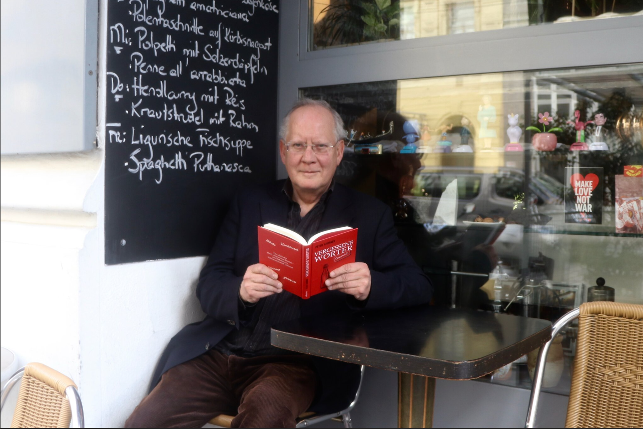 that I constantly offer to German friends, that one can buy conveniently in Buchhandlung Riedl (as well as the other books he wrote) and that he advertises in Vienna's nicest Italian bar (Hold) in an online article here: