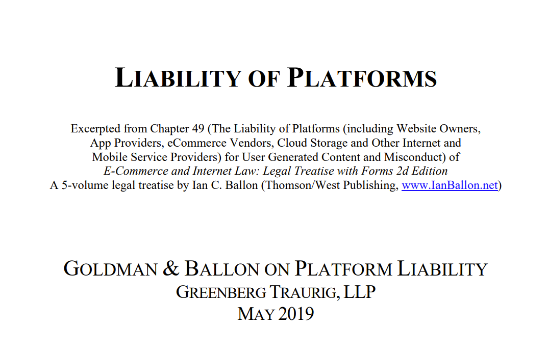 Both give me (some, critical) credit for using the metaphor that a platform should be seen as a fleamarket where the organiser doesn't take responsibility for whatever happens there. That's very kind, but I didn't invent this, I am only old enough to remember. The story goes way into the 90ies, for example in Fonovisa, Inc., Plaintiff-appellant, v. Cherry Auction, Inc.; 76 F.3d 259 (9th Cir. 1996), and in early debates on section 230 or in Lockheed Martin Corp. v. Network Solutions, Inc., 194 F.3d 980 (9th Cir. 1999) of the Communications Decency Act.