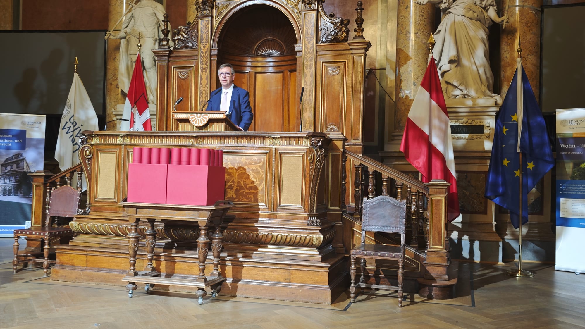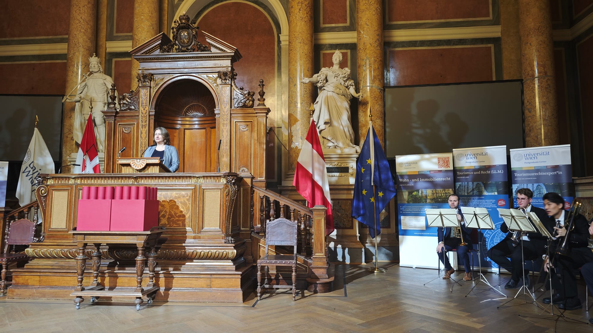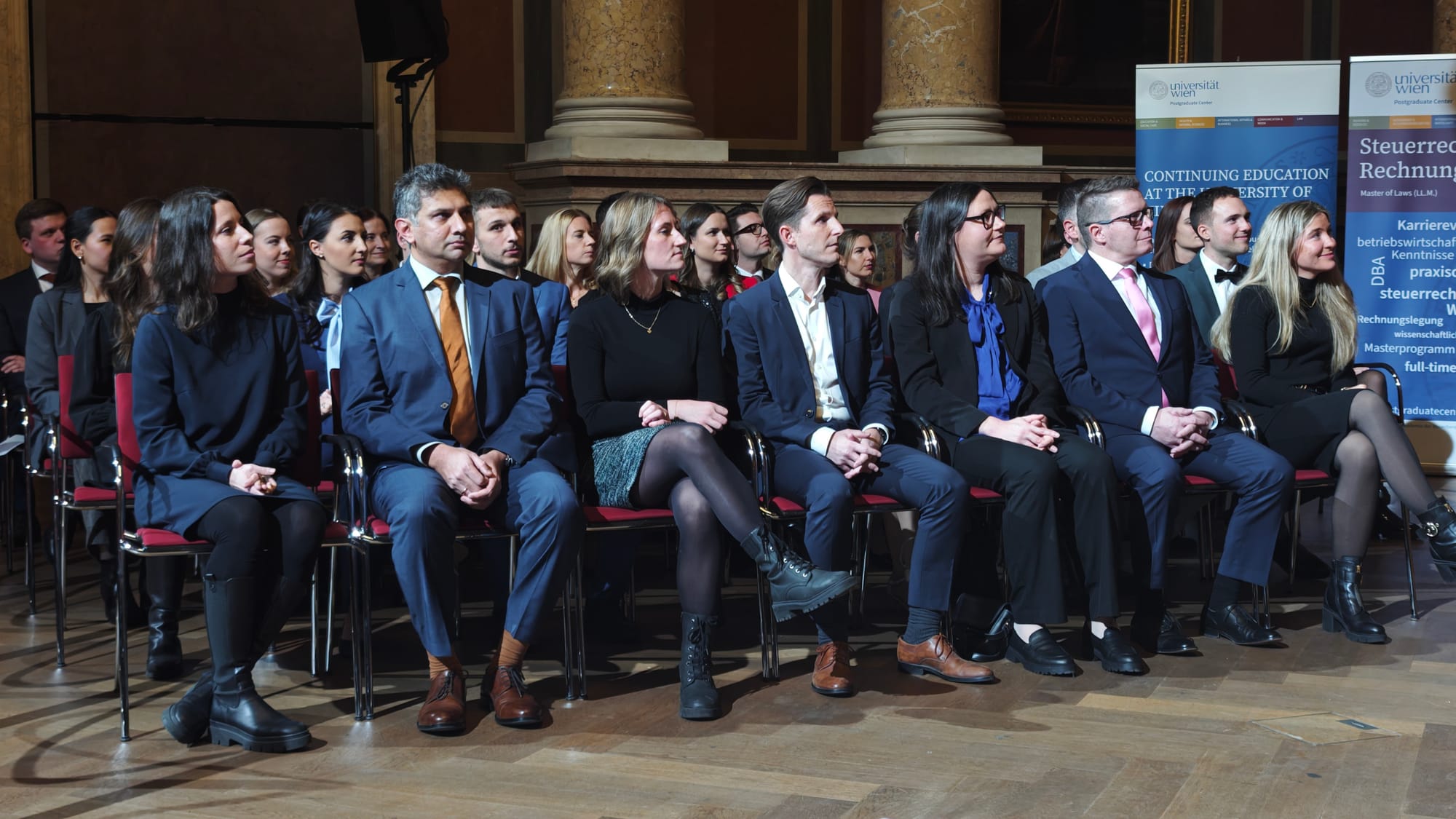 The LLM-programmes in tax law, real estate law, tourism and law and information and media law celebrated a joint graduation ceremony in UNIVIE's big hall. Vice-dean Prof. Dr. Franz-Stefan Meissel and Vice-Studienpräses Dr. Dr. Julia Wippersberg delivered very kind speeches