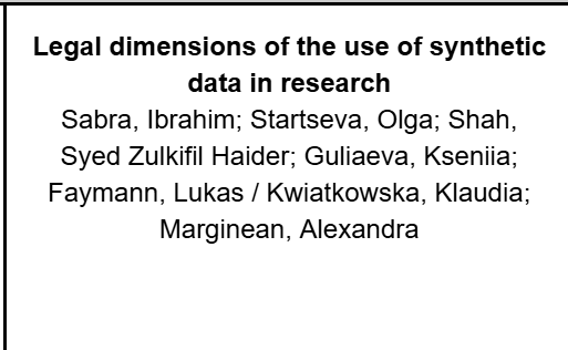Masaryk University Brno hosts the yearly Cyberspace Conference on November 27th and 28th. This is a very interesting conference with 300 participants from all over the world and all over different disciplines. Saturday comes with thirty (!) workshops in 6 streams. One of them will be on "Legal dimensions of the use of synthetic data in research" and will be run by the department. I will have the privilege to chair this session.